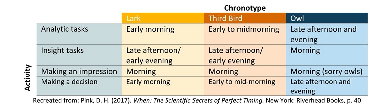 Recreated from: Pink, D. H. (2017). When: The Scientific Secrets of Perfect Timing. New York: Riverhead Books, p. 40