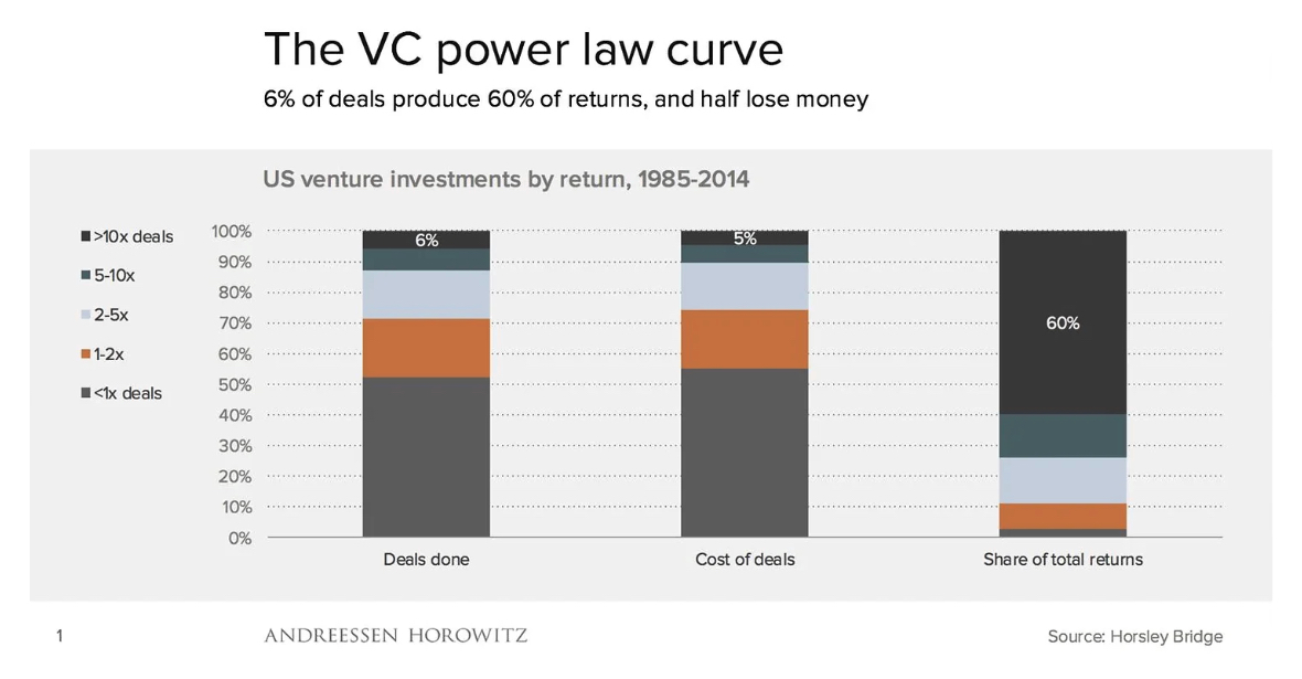 - Most investments fail: VCs know that most startups we invest in won’t make it. Many will struggle, some will just break even, and others will fail completely, losing all the money invested.