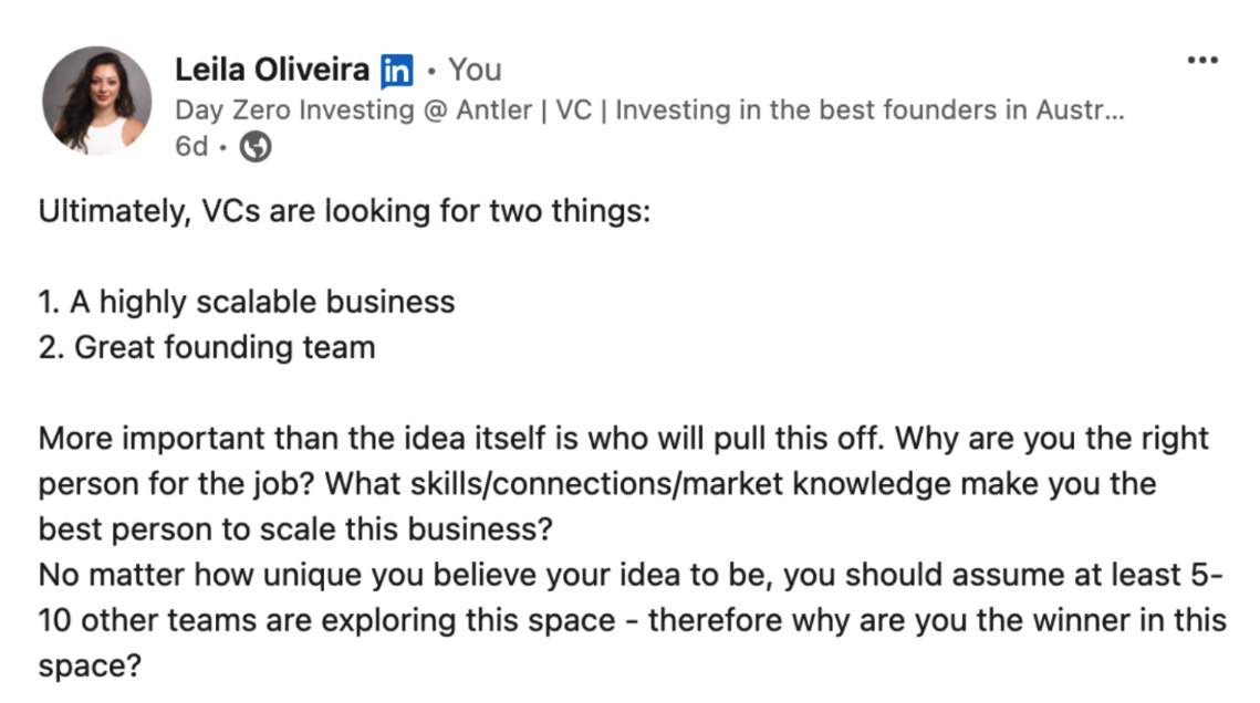 - Leila Oliveira is a scouting manager at early-stage investor Antler.