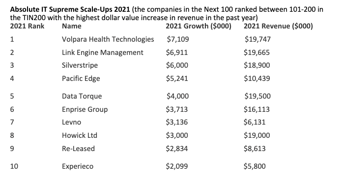 The TIN200 companies employ more than 57,000 staff, with employment up by more than 3,000 people (+ 5.9%) vs 4,000 (+8.4%) in 2020. The report says the slowing growth can be partially attributed to border restrictions and domestic talent shortages.