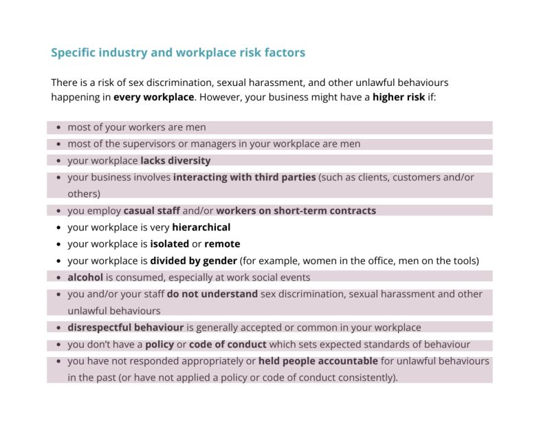 If you look at the Australian Human Rights Commission‘s 2023 report on the risk factors in a workplace that increase vulnerability to sexual harassment, the startup ecosystem ticks nearly every box (see screenshot below).