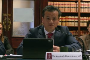 Minister Anoulack Chanthivong at the NSW Budget Estimates committee hearing this week. Screenshot