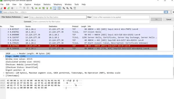 This screenshot shows test results run via the Wireshark software to determine whether data from COVIDSafe was being transmitted to external servers.