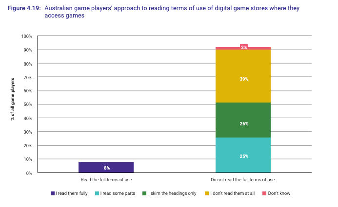 As the Australian Competition and Consumer Commission (ACCC) pointed out in a report last month, most users — especially those in a gaming context — do not read these agreements before signing them.