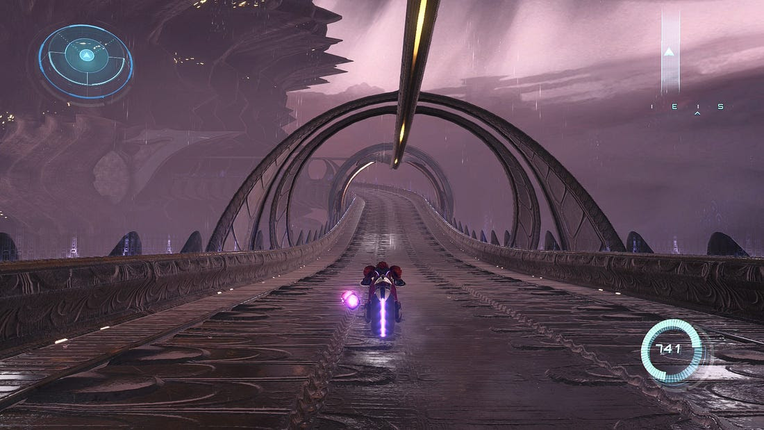 Part of the reason for this is the introduction of the Vi-O-La, a sci-fi motorcycle that Samus uses to cross the vast desert separating the regions. It’s a cool concept on paper, but in practice it bogs down the game’s flow. It creates a clunky additional tutorial section four hours in, and beyond this doesn’t lend much to the overall gameplay aside from a few cool cutscenes.