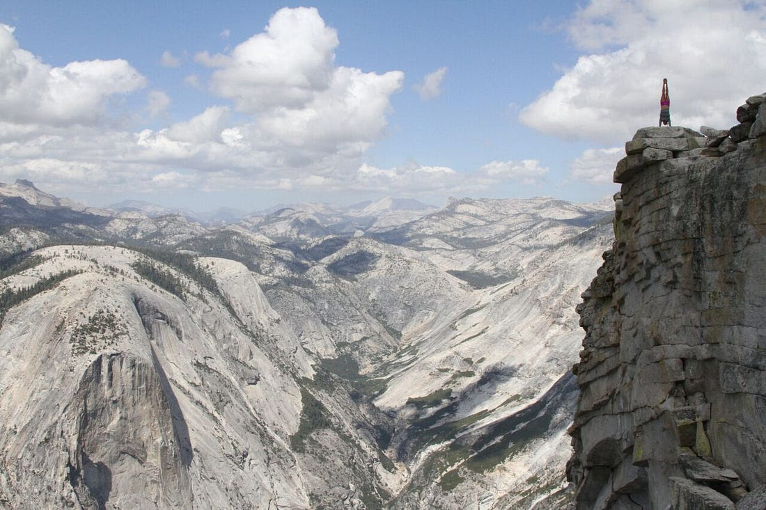 Doing handstands at 2694m on the top of Half Dome, Yosemite.