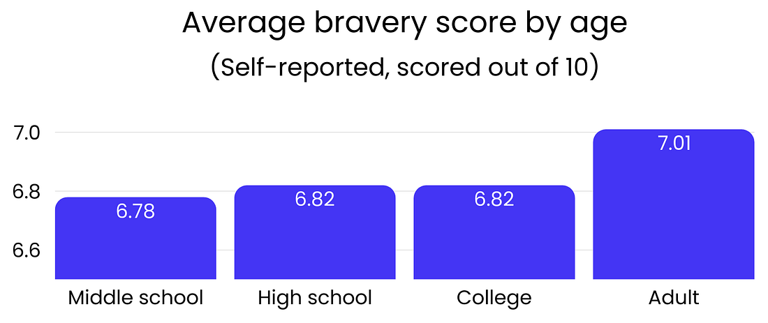 All of the below research is a credit to Brave Enterprises. Over the past decade, they’ve run over 500 bravery training sessions, for 20k people, ranging from teens to adults. Most importantly, they collected data.