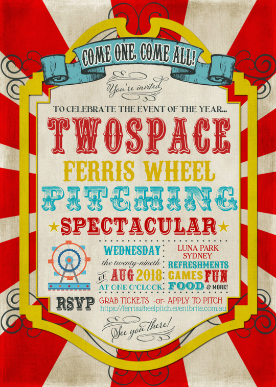 Coworking network TwoSpace will be celebrating the highs at Sydney’s Luna Park on August 29, running a pitching event – on the iconic Luna Park ferris wheel. TwoSpace will be putting startups into the ferris wheel with investors, giving them one spin to pitch their idea and help…get it off the ground.