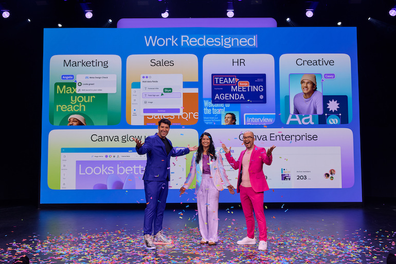 The rubber hit that philosophical road two years ago when Canva launched its online graphic design tool Visual Suite. It was an ambitious AI-powered project spanning docs, websites, videos, whiteboards and more.