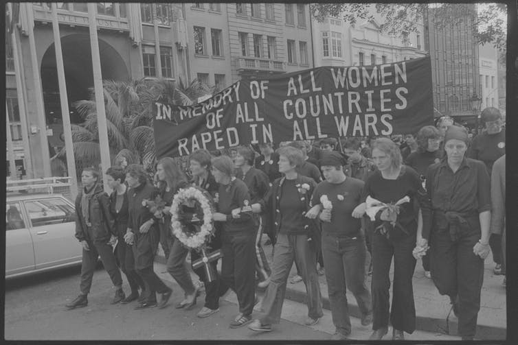 Activism around sexual violence moved to centre stage: women marched against male sexual violence in Reclaim the Night Marches from 1978, and in the early 1980s feminists marched on Anzac Day “in memory of all women raped in all wars”.