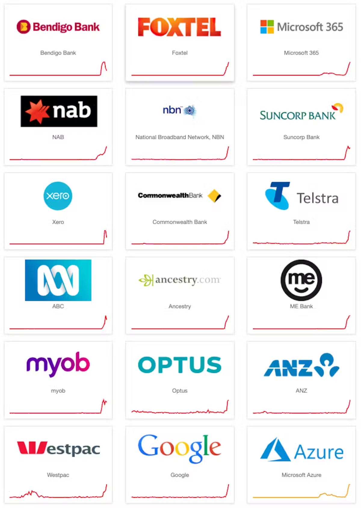 DownDetector showed that a large swathe of Australian businesses are experiencing some form of outage brought on by the software failure.
