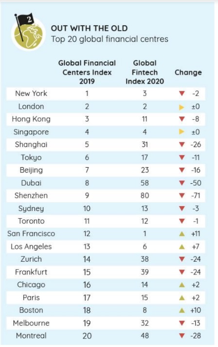 Source: Global Fintech Index City Rankings 2020/Findexable