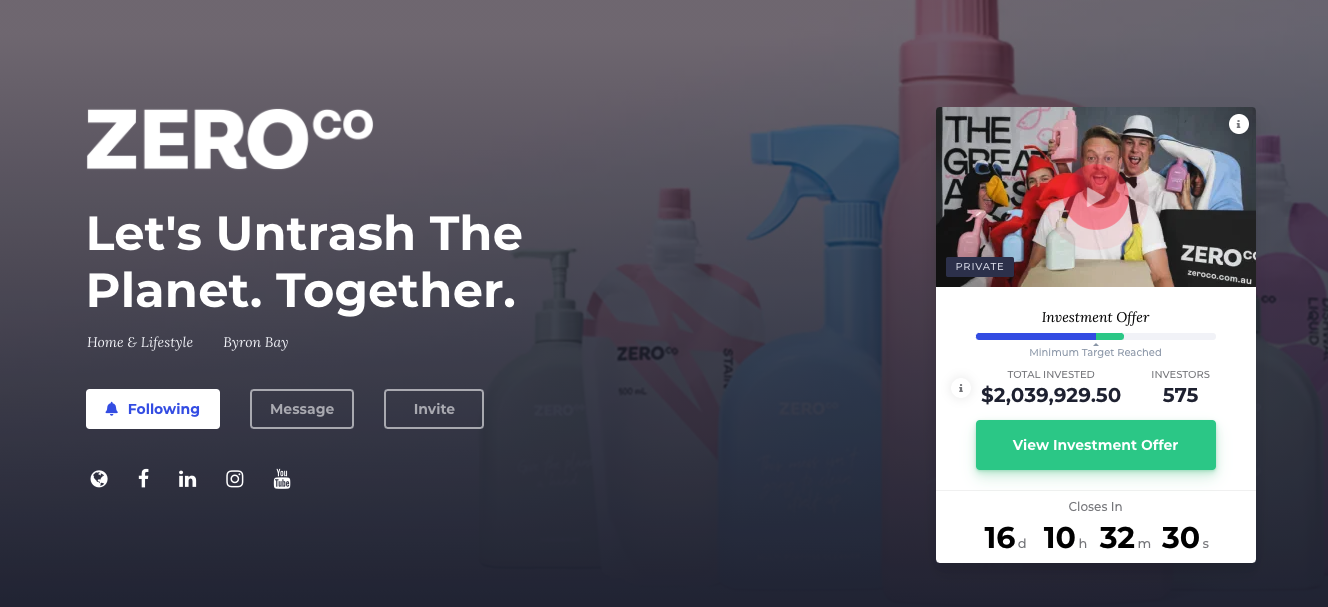 In the first 10 minutes of the raise, Zero Co had scooped up $1.17 million from 155 investors.