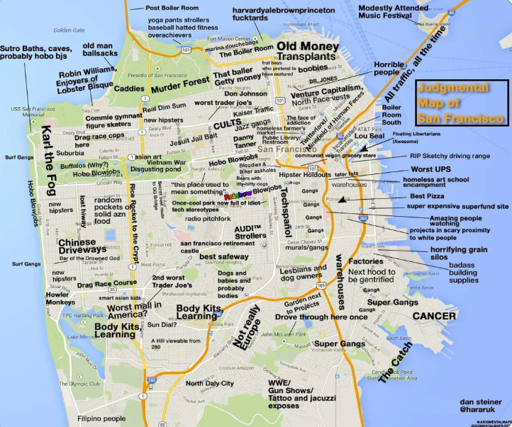 Finally, “Silicon Valley” is known as the South Bay like Palo Alto, Mountain View, etc. Young people don’t really live there because there’s nothing to do.