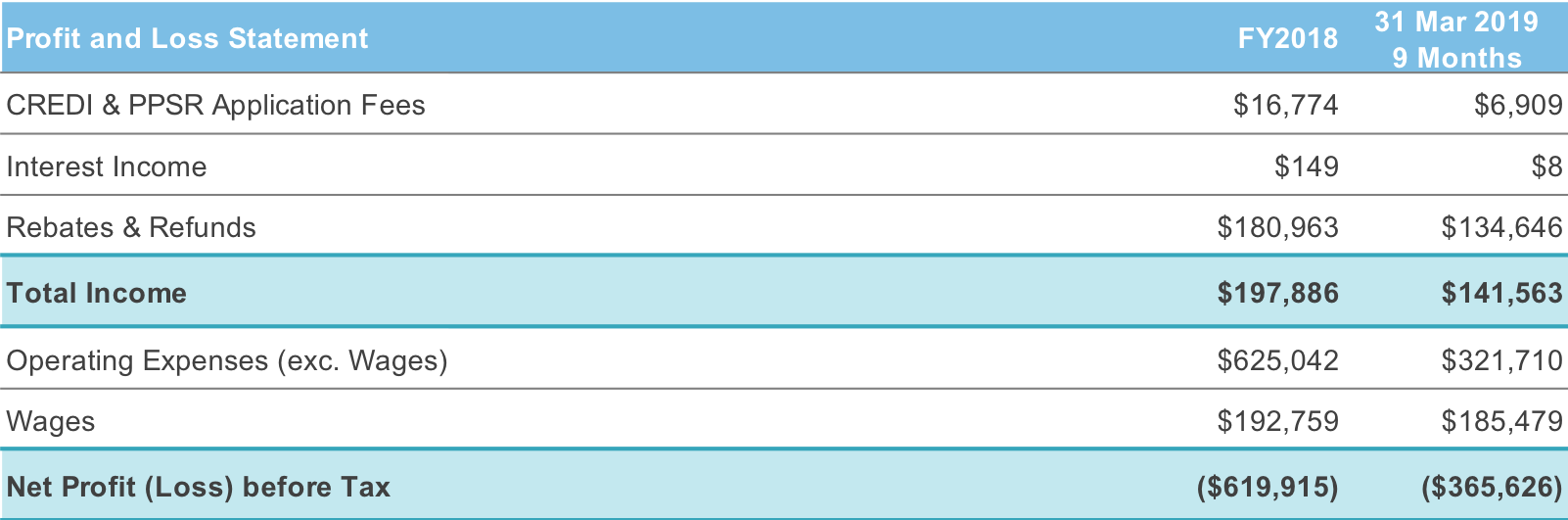 However, the company has yet to turn a profit in two years of operation, posting a loss of nearly $620,000 in FY 18 and more than $365,000 in the first nine months of FY19.