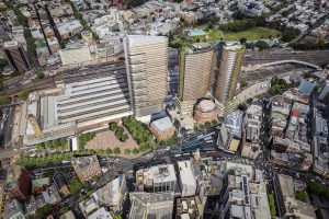 Sydney Central (right) beside the Atlassian building