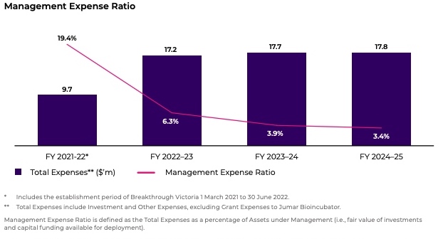 Breakthrough Victoria’s management expense ratio. Source: BV annual report