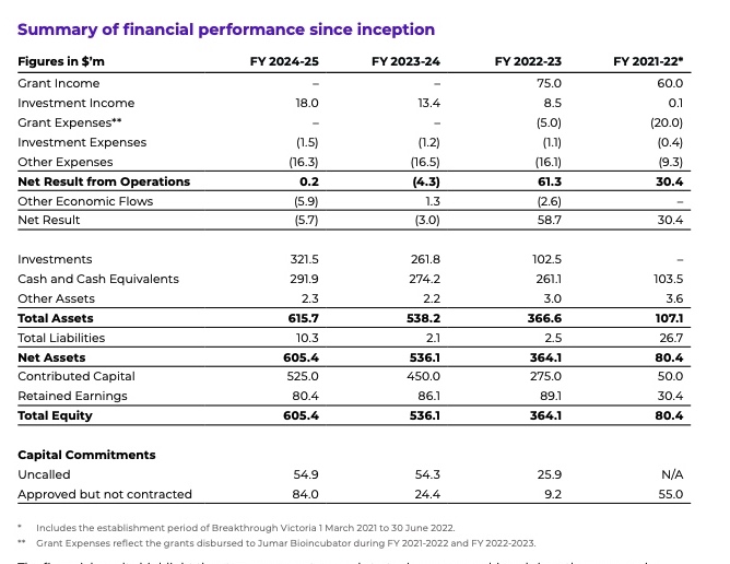 Perhaps stung by criticism in previous years about the cost of the fund, Breakthrough Victoria was at pains to point out that expense growth continued to fall and sits below the Consumer Price Index.