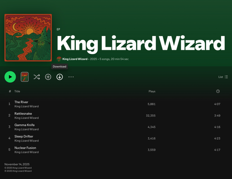 The AI ripoff of King Gizzard on Spotify, now removed – but not before Futurism.com, which broke the story, took this screenshot.