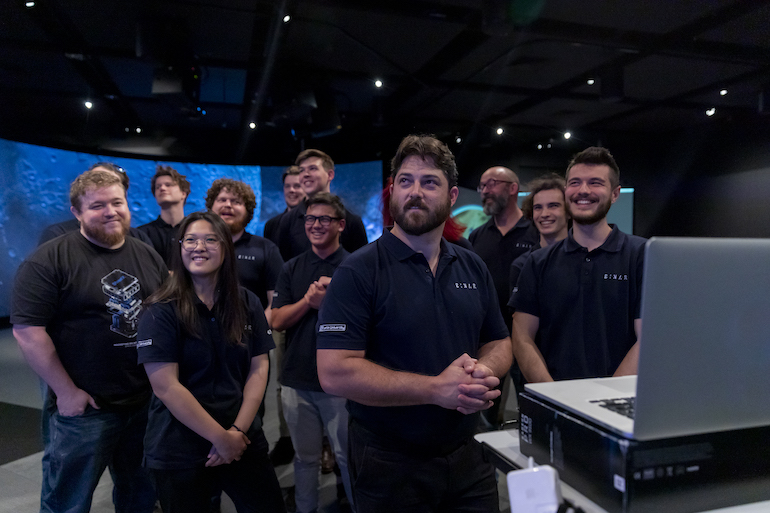 Members of the Binar Space Program watch the live streamed deployment of Binar-1 in October last year. Photo: Cam Campbell/@placeorpoint