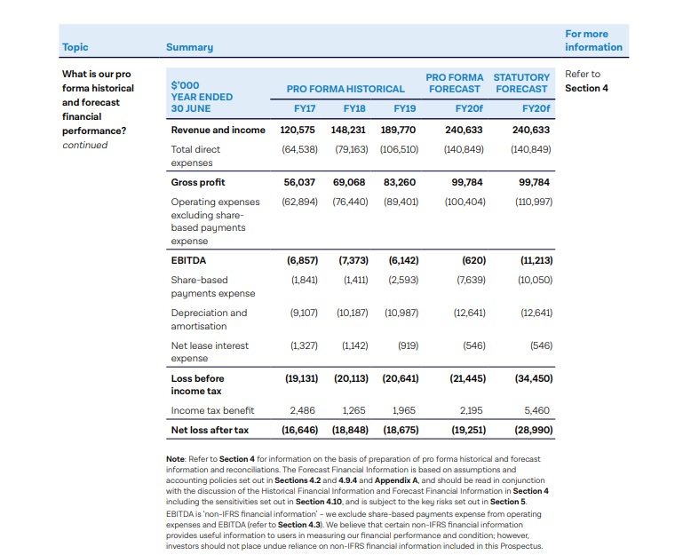 Here are Tyro’s financial and forecasts as per the Prospectus:
